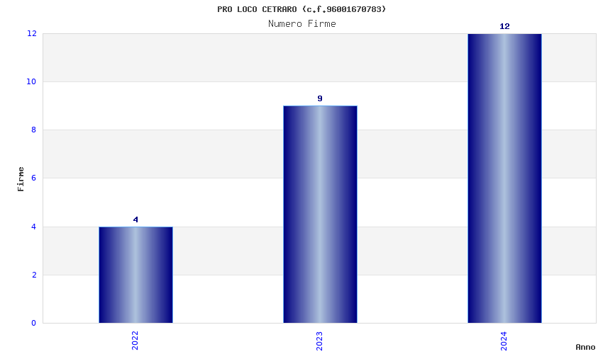 | Anno | Firme | Importi | Media | Naz. | Reg. | Prov. | Comu. |