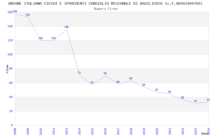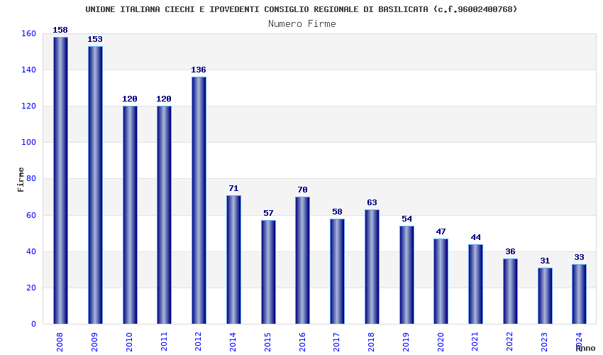 | Anno | Firme | Importi | Media | Naz. | Reg. | Prov. | Comu. |