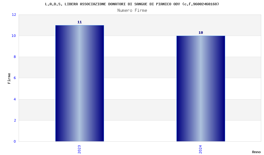 | Anno | Firme | Importi | Media | Naz. | Reg. | Prov. | Comu. |