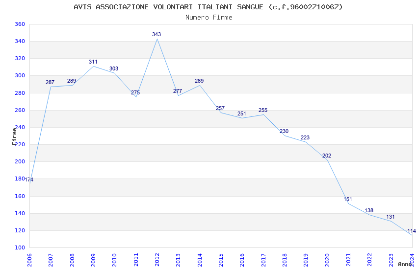 | Anno | Firme | Importi | Media | Naz. | Reg. | Prov. | Comu. |