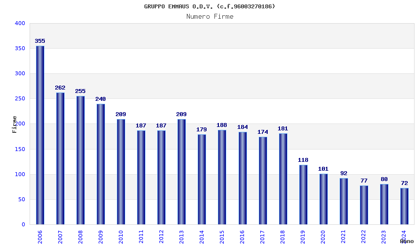 | Anno | Firme | Importi | Media | Naz. | Reg. | Prov. | Comu. |