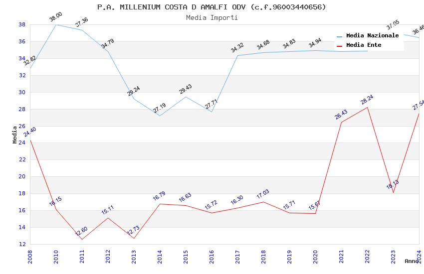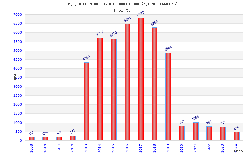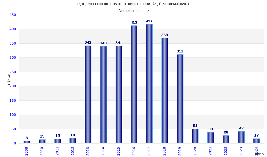 | Anno | Firme | Importi | Media | Naz. | Reg. | Prov. | Comu. |