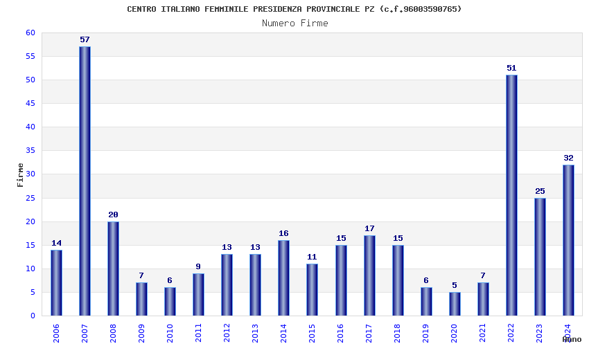 Anno Firme Importi Media Naz. Reg. Prov. Comu.
