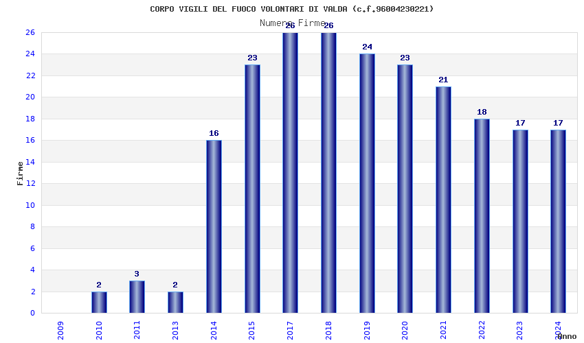 | 2017 | 26 | 569,14 | 21,89 | 42.339 | 1.578 | 779 | 4 |