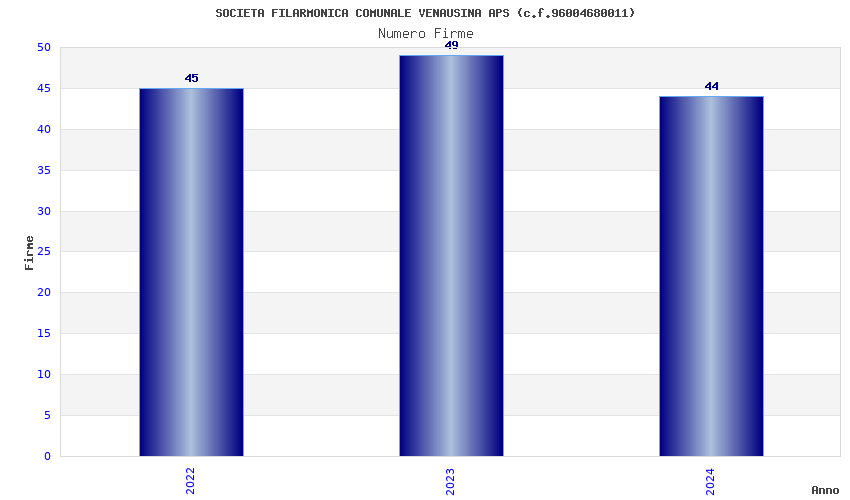 | Anno | Firme | Importi | Media | Naz. | Reg. | Prov. | Comu. |