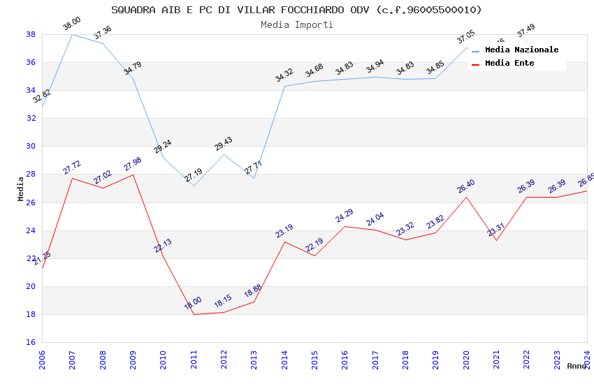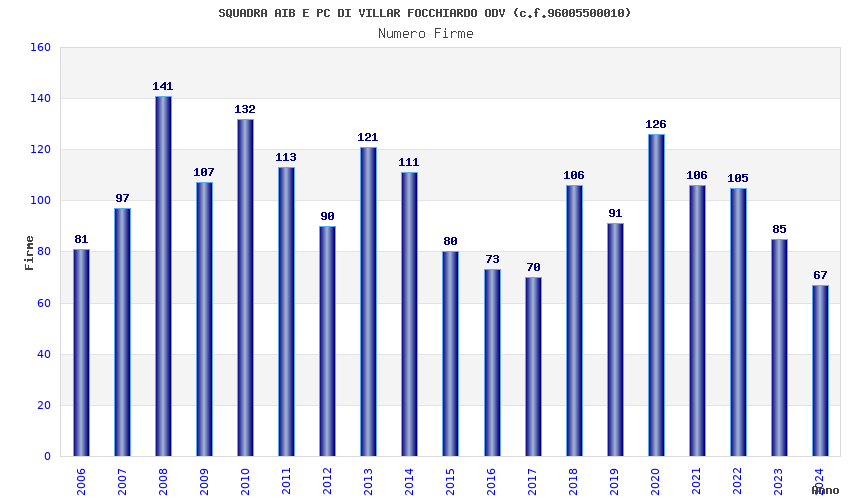 | Anno | Firme | Importi | Media | Naz. | Reg. | Prov. | Comu. |