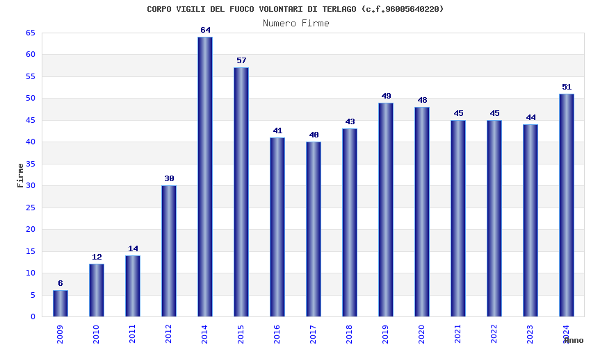 | Anno | Firme | Importi | Media | Naz. | Reg. | Prov. | Comu. |