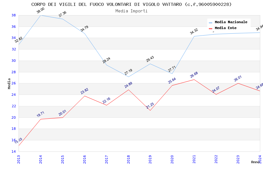 | Anno | Firme | Importi | Media | Naz. | Reg. | Prov. | Comu. |
