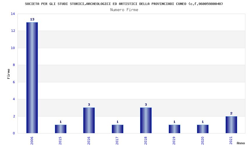 | Anno | Firme | Importi | Media | Naz. | Reg. | Prov. | Comu. |