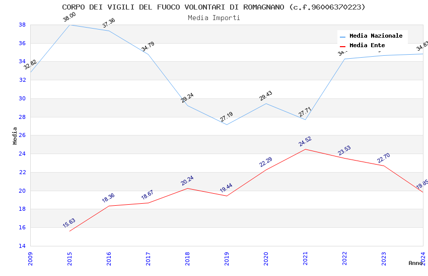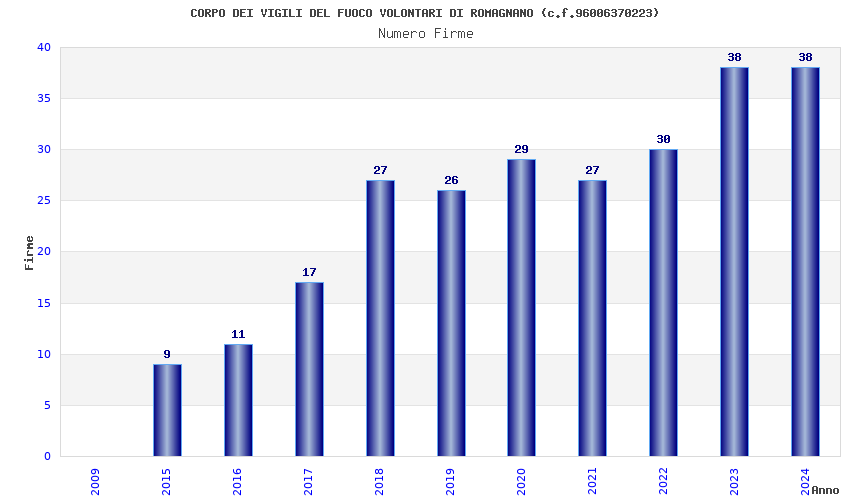 | Anno | Firme | Importi | Media | Naz. | Reg. | Prov. | Comu. |