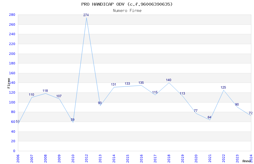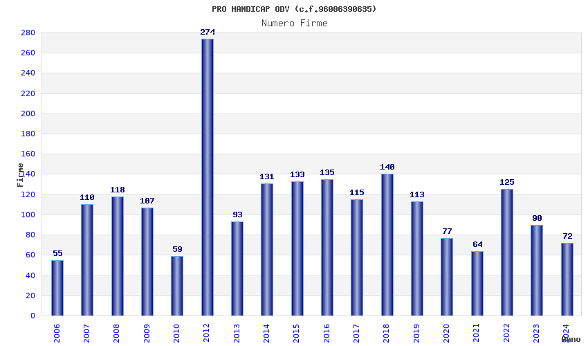 | Anno | Firme | Importi | Media | Naz. | Reg. | Prov. | Comu. |
