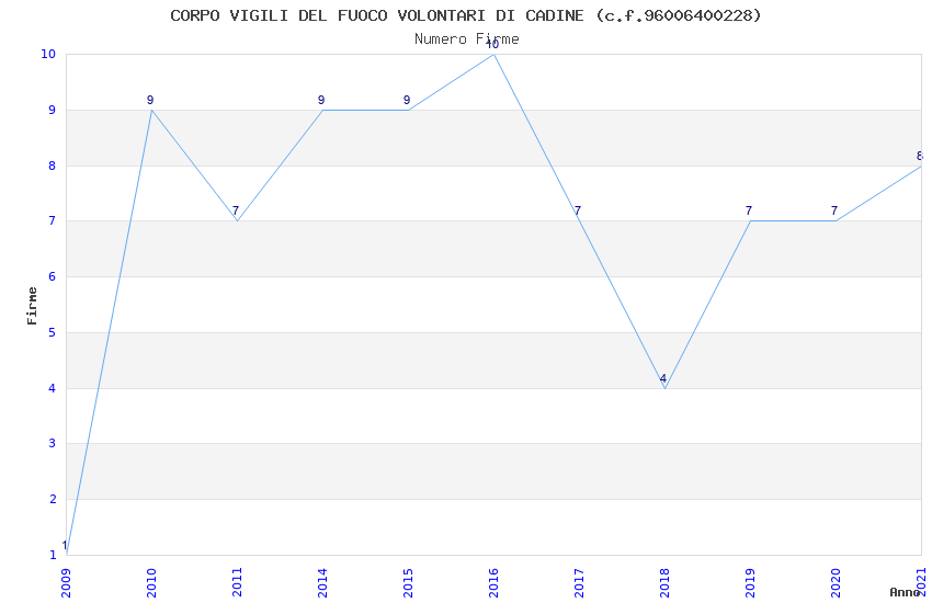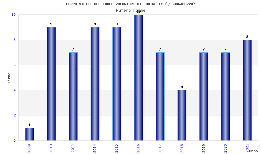 | Anno | Firme | Importi | Media | Naz. | Reg. | Prov. | Comu. |