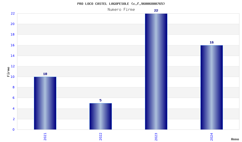 | Anno | Firme | Importi | Media | Naz. | Reg. | Prov. | Comu. |