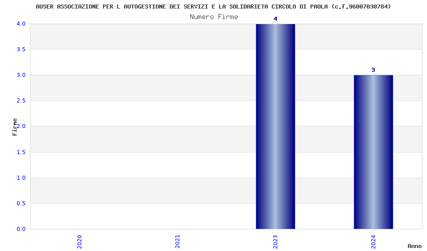 | Anno | Firme | Importi | Media | Naz. | Reg. | Prov. | Comu. |