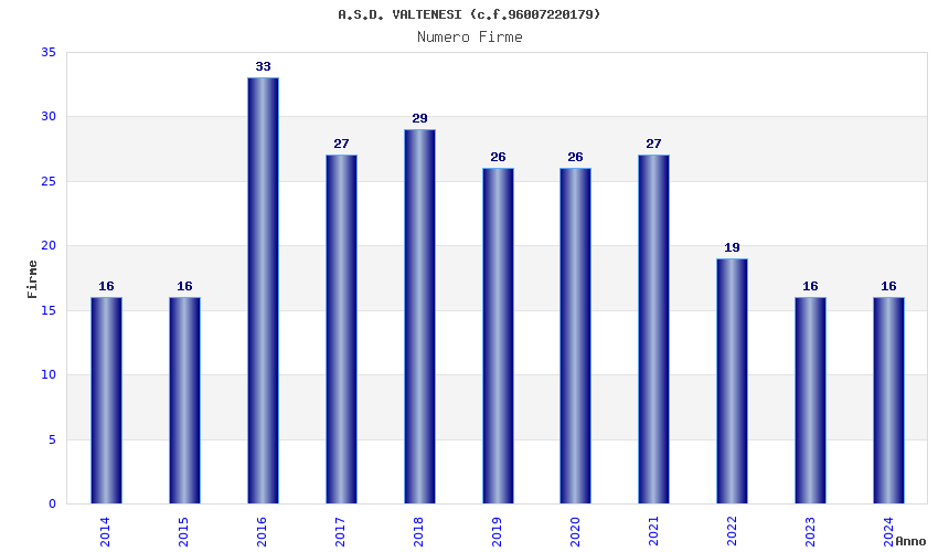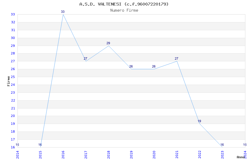 | 2016 | 33 | 1.353,21 | 41,01 | 28.456 | 6.326 | 813 | 5 |