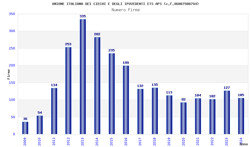 Anno Firme Importi Media Naz. Reg. Prov. Comu.