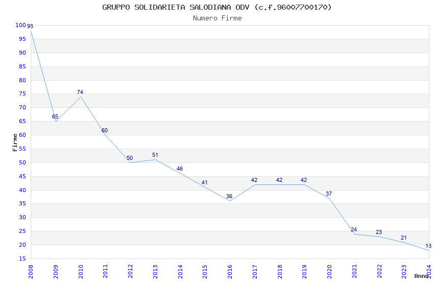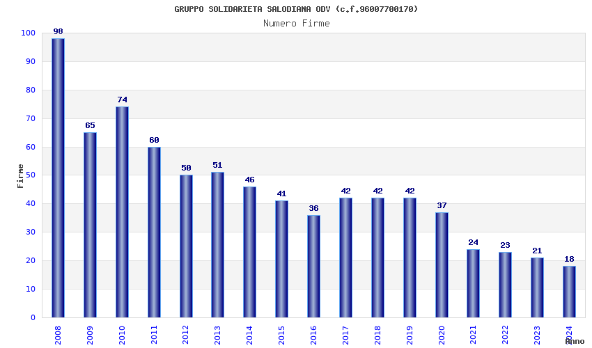 | Anno | Firme | Importi | Media | Naz. | Reg. | Prov. | Comu. |