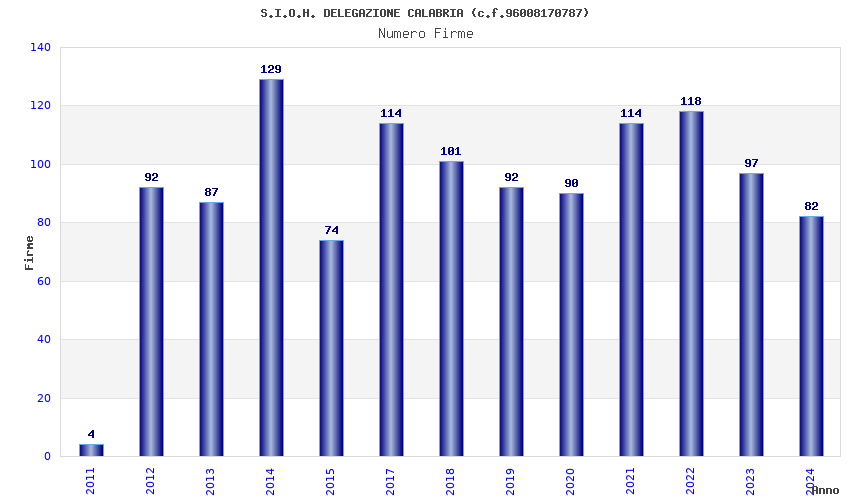| Anno | Firme | Importi | Media | Naz. | Reg. | Prov. | Comu. |