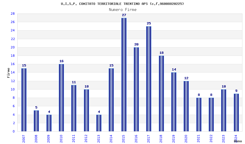 | Anno | Firme | Importi | Media | Naz. | Reg. | Prov. | Comu. |
