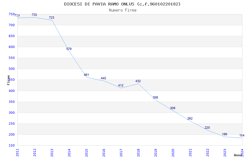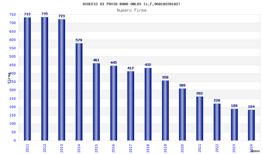 | Anno | Firme | Importi | Media | Naz. | Reg. | Prov. | Comu. |
