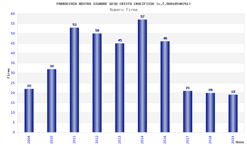 | Anno | Firme | Importi | Media | Naz. | Reg. | Prov. | Comu. |