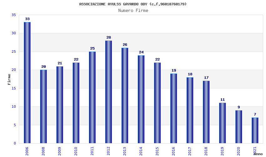 | Anno | Firme | Importi | Media | Naz. | Reg. | Prov. | Comu. |