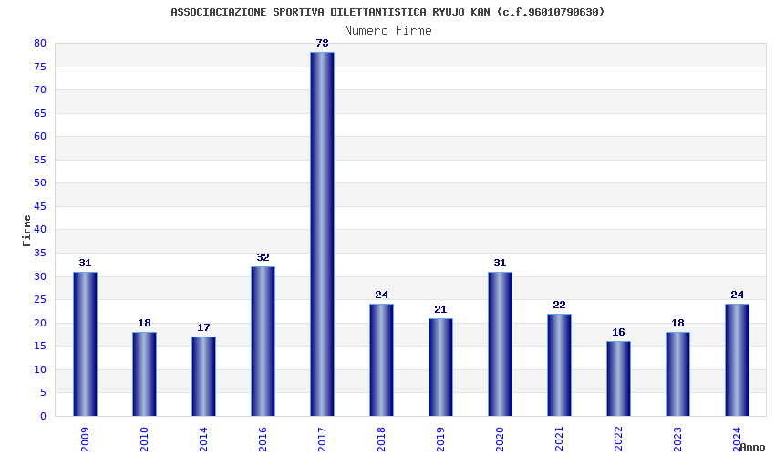 | 2017 | 78 | 3.416,92 | 43,81 | 15.706 | 922 | 487 | 227 |