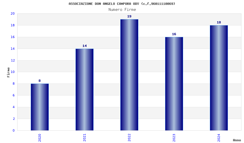 | Anno | Firme | Importi | Media | Naz. | Reg. | Prov. | Comu. |