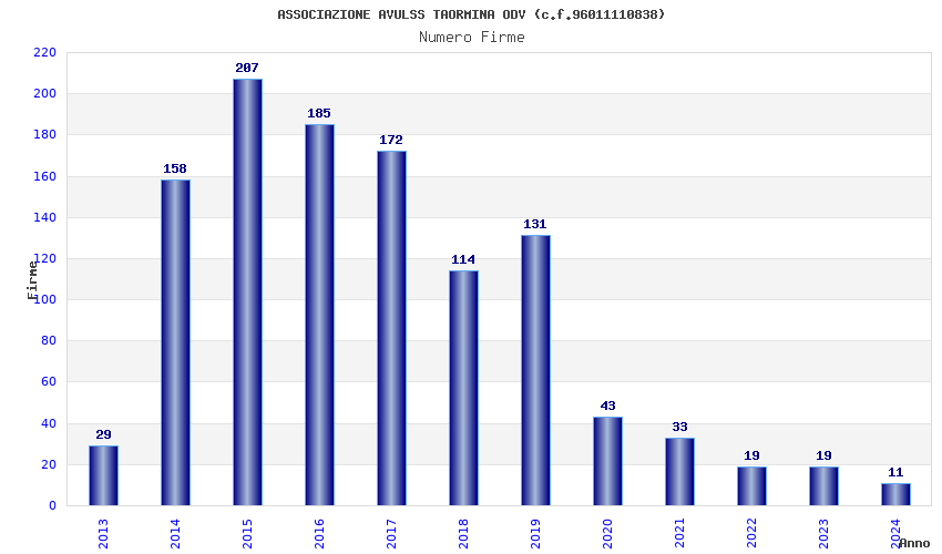 | Anno | Firme | Importi | Media | Naz. | Reg. | Prov. | Comu. |