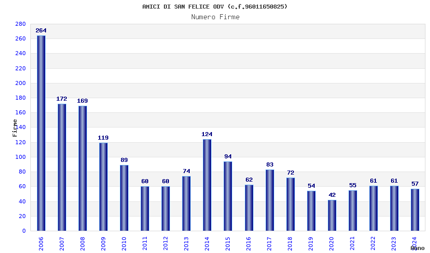 | Anno | Firme | Importi | Media | Naz. | Reg. | Prov. | Comu. |
