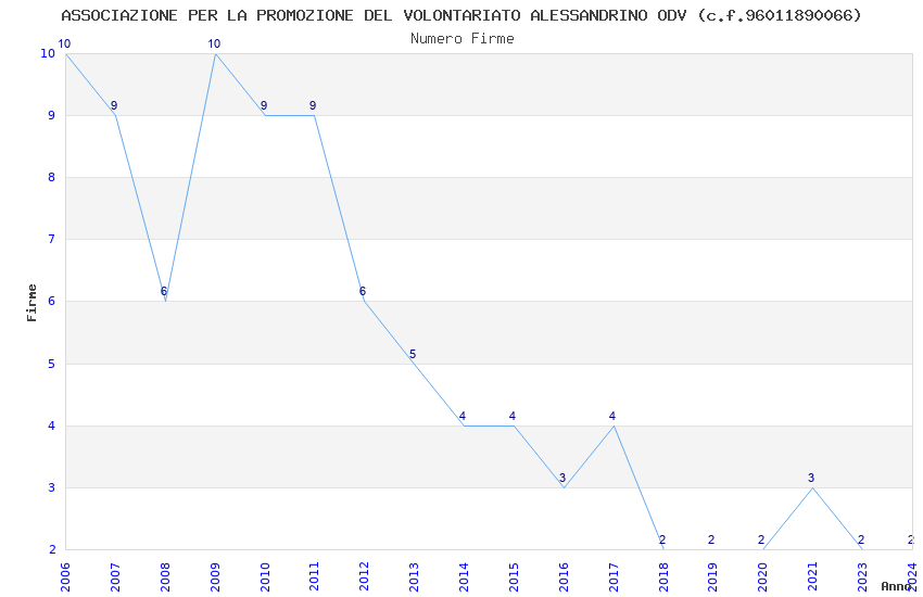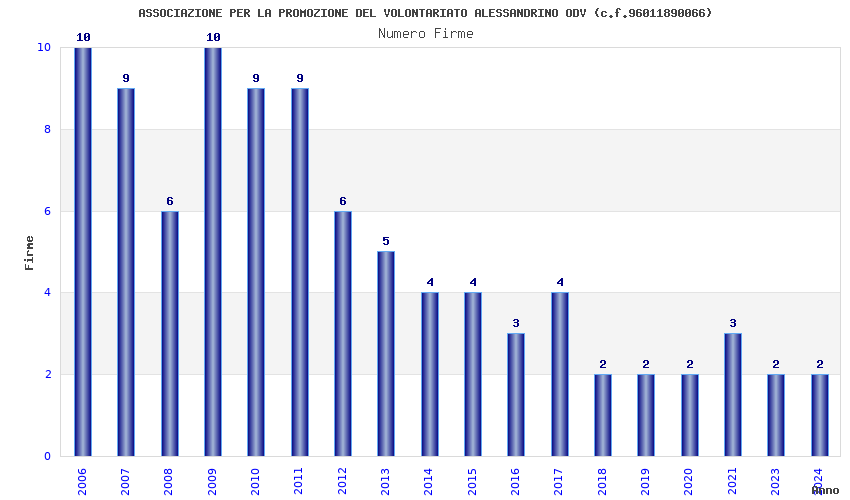 | Anno | Firme | Importi | Media | Naz. | Reg. | Prov. | Comu. |