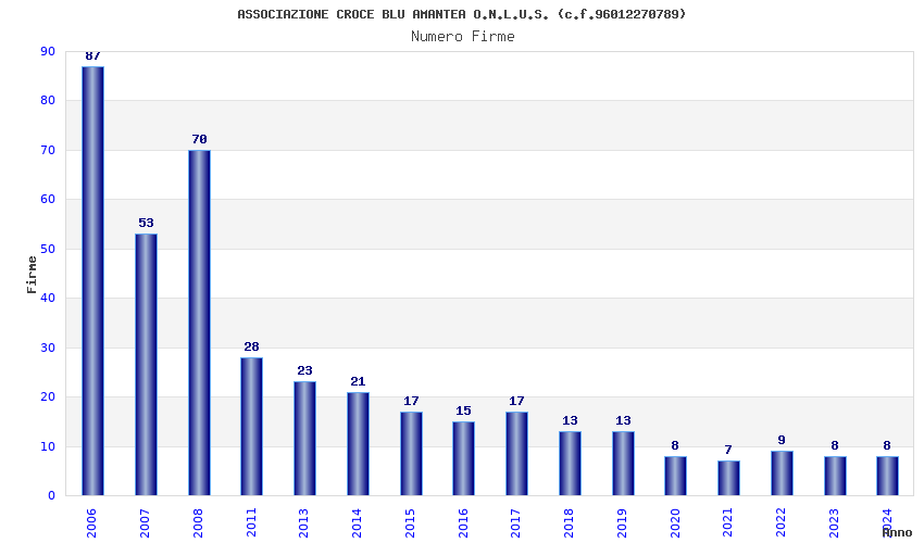| Anno | Firme | Importi | Media | Naz. | Reg. | Prov. | Comu. |