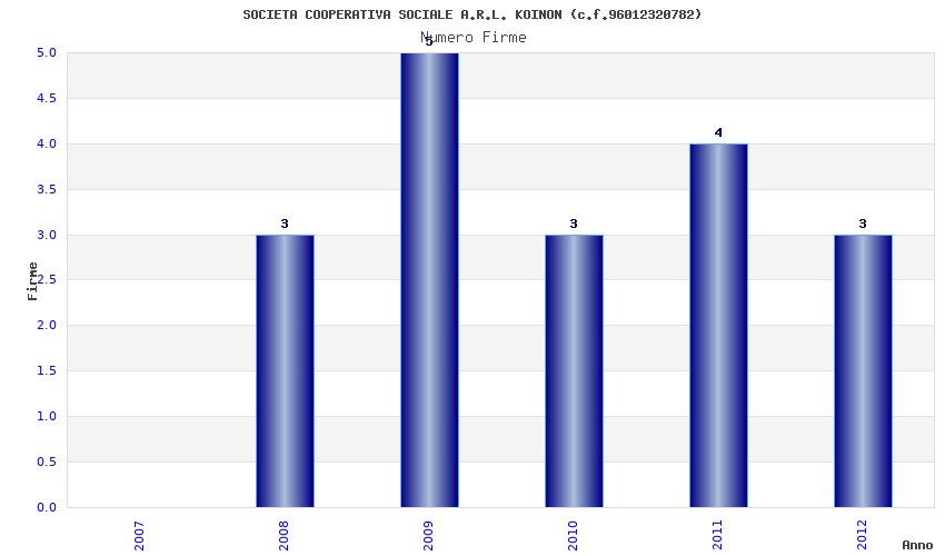 | Anno | Firme | Importi | Media | Naz. | Reg. | Prov. | Comu. |