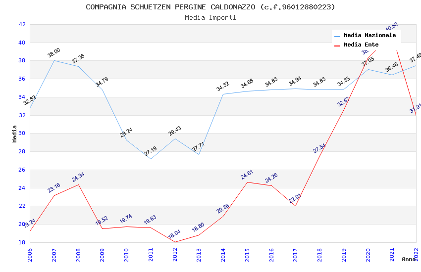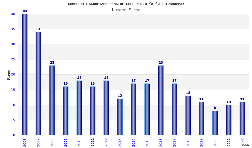 | Anno | Firme | Importi | Media | Naz. | Reg. | Prov. | Comu. |