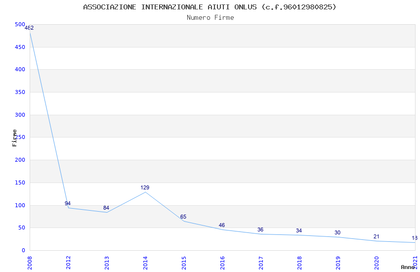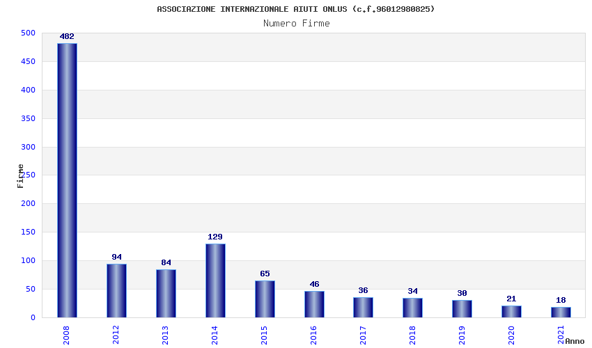 | Anno | Firme | Importi | Media | Naz. | Reg. | Prov. | Comu. |