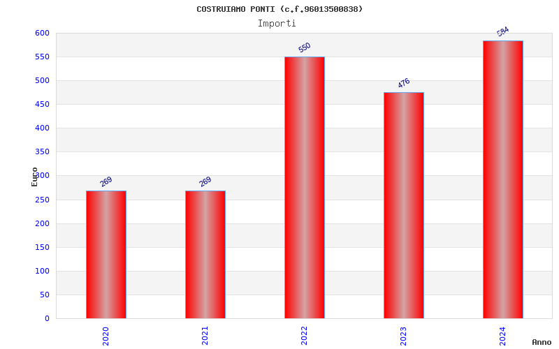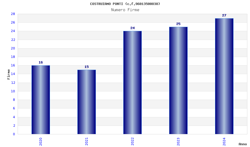 | Anno | Firme | Importi | Media | Naz. | Reg. | Prov. | Comu. |