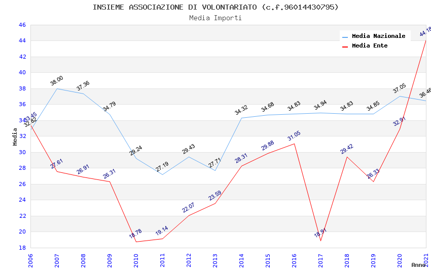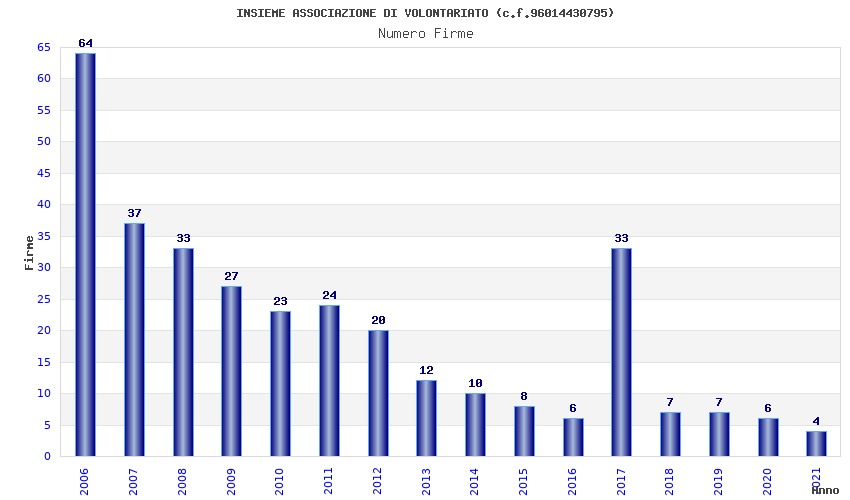 | Anno | Firme | Importi | Media | Naz. | Reg. | Prov. | Comu. |