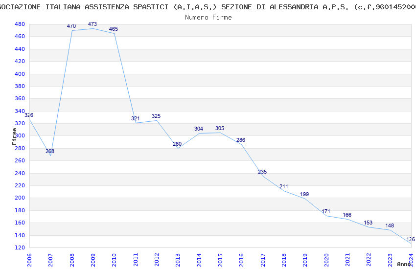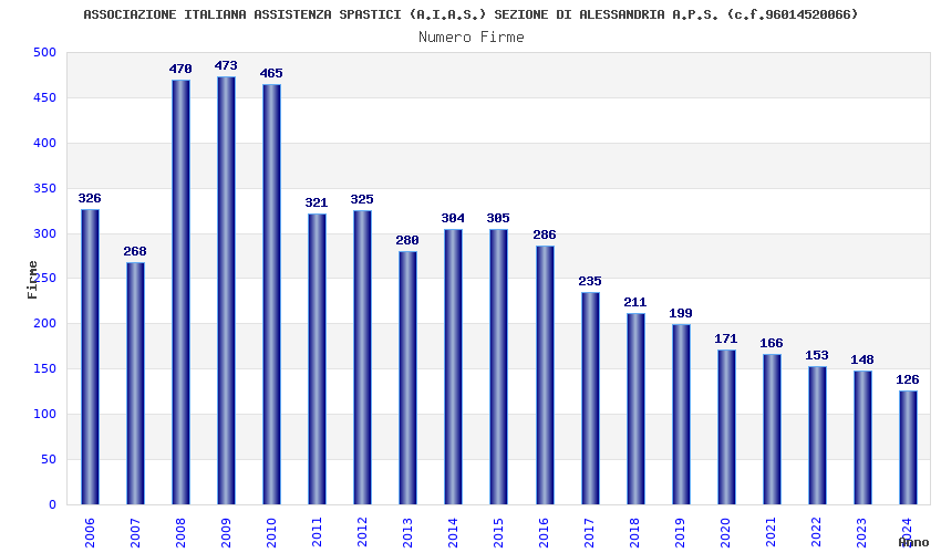 | Anno | Firme | Importi | Media | Naz. | Reg. | Prov. | Comu. |