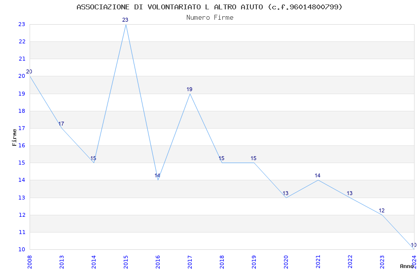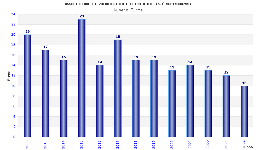 | Anno | Firme | Importi | Media | Naz. | Reg. | Prov. | Comu. |