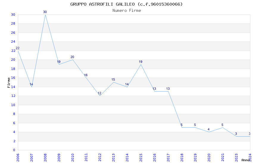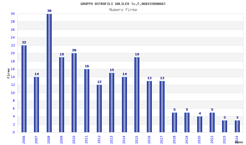 | Anno | Firme | Importi | Media | Naz. | Reg. | Prov. | Comu. |