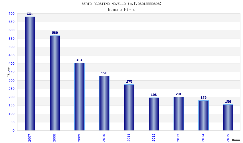 Anno Firme Importi Media Naz. Reg. Prov. Comu.