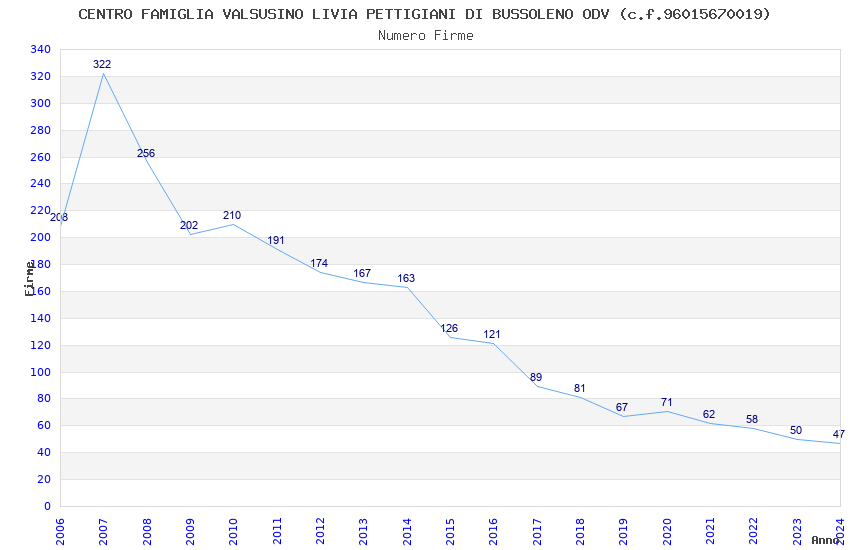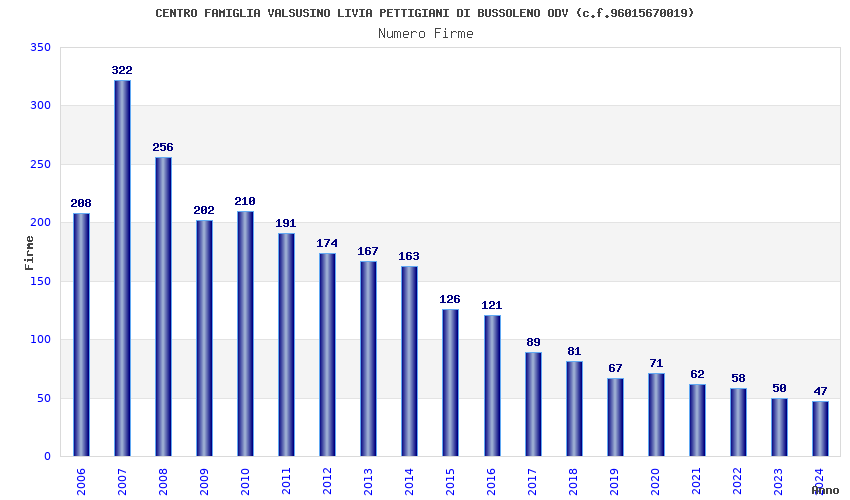 | Anno | Firme | Importi | Media | Naz. | Reg. | Prov. | Comu. |