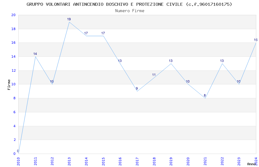 | 2019 | 13 | 234,42 | 18,03 | 53.972 | 10.763 | 1.446 | 7 |