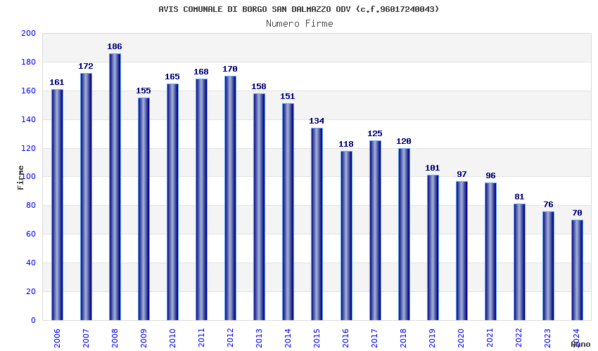 | 2024 | 70 | 1.551,45 | 22,16 | 28.795 | 2.220 | 353 | 5 |