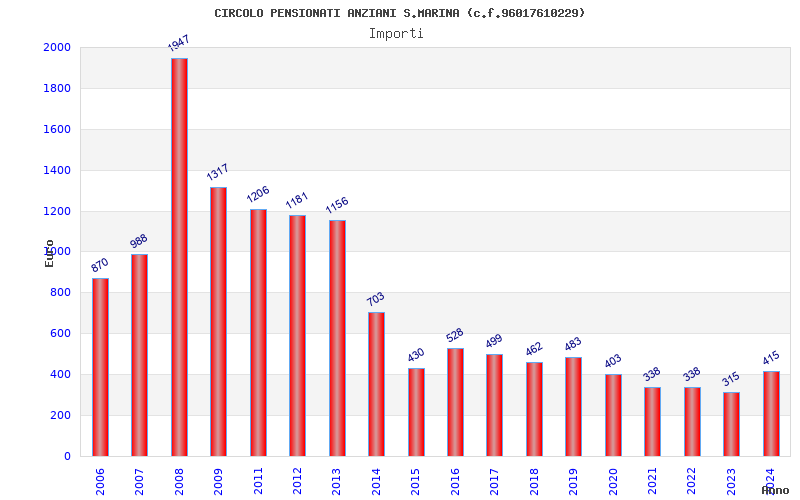 | Anno | Firme | Importi | Media | Naz. | Reg. | Prov. | Comu. |