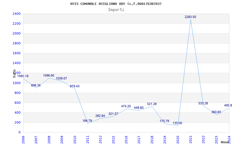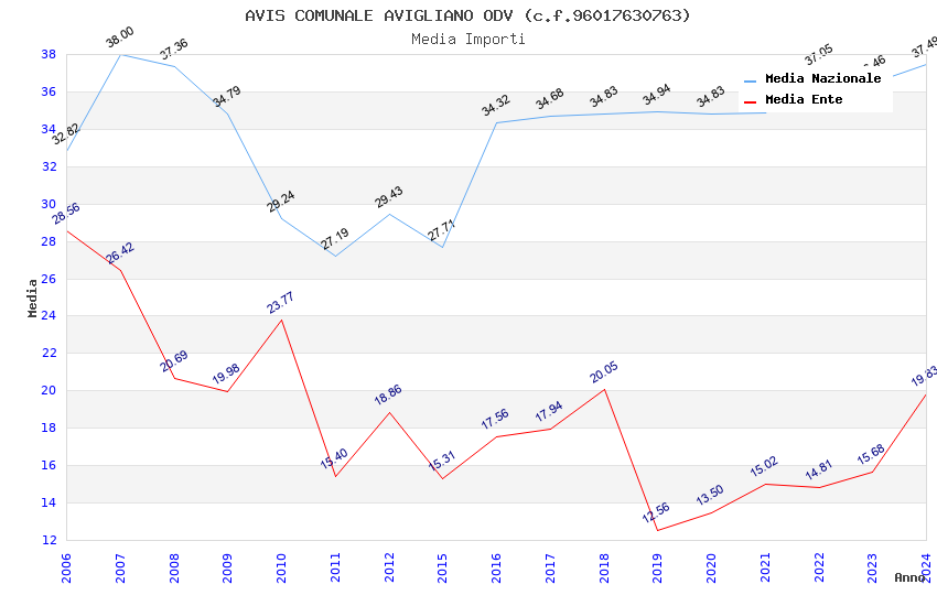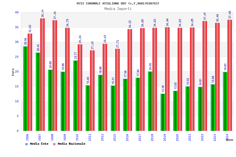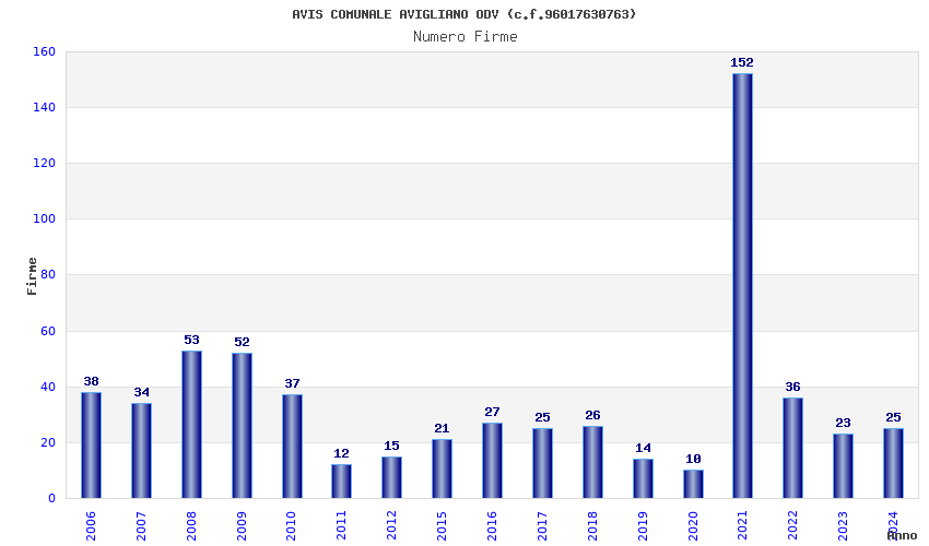 | Anno | Firme | Importi | Media | Naz. | Reg. | Prov. | Comu. |