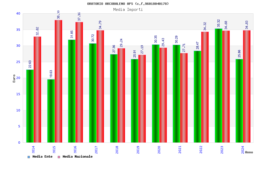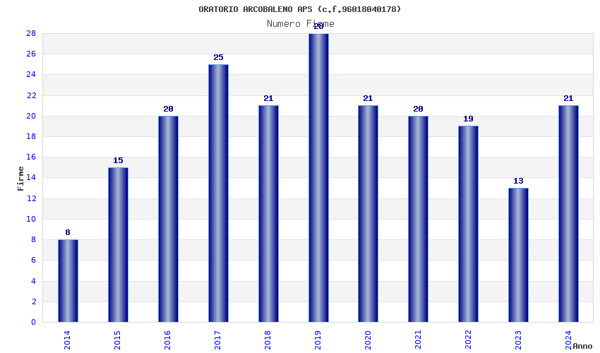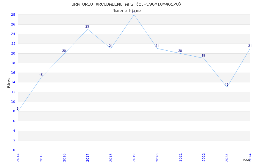 | Anno | Firme | Importi | Media | Naz. | Reg. | Prov. | Comu. |