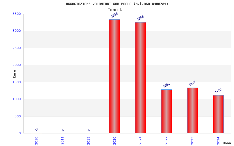 | Anno | Firme | Importi | Media | Naz. | Reg. | Prov. | Comu. |