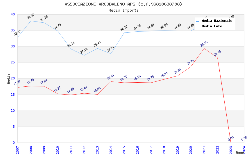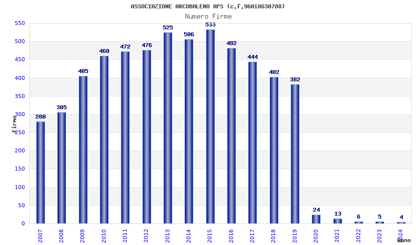 | Anno | Firme | Importi | Media | Naz. | Reg. | Prov. | Comu. |