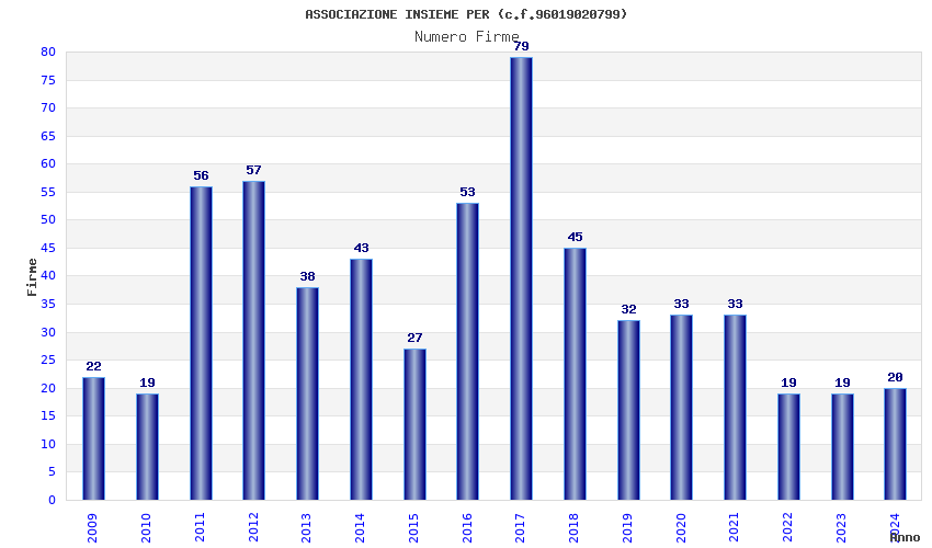 | Anno | Firme | Importi | Media | Naz. | Reg. | Prov. | Comu. |